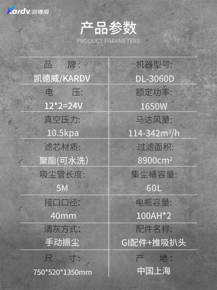 DL-3060D凱德威電瓶式吸塵器是我司的一款充電式工業(yè)吸塵器,摒棄了常規(guī)拖線式吸塵器使用范圍的局限性。此款吸塵器利用鋰電池組做為電力源,不需外接電源,操作簡(jiǎn)單方便。機(jī)器除常規(guī)手持式吸塵外,裝置有60cm寬可推吸扒頭,可以邊推邊吸