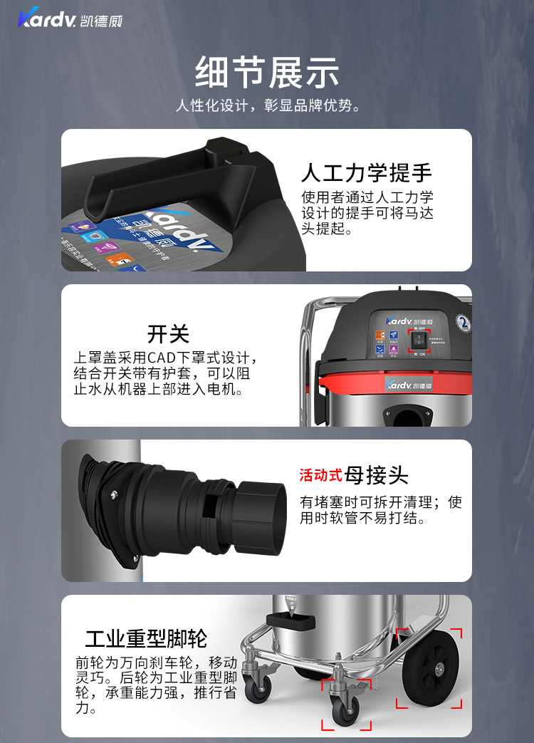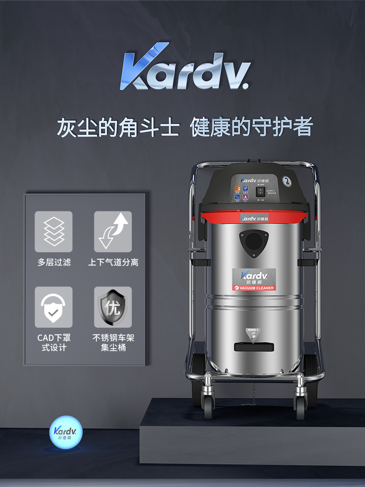 GS-1245是一款工商業型吸塵器,有可達45L左右的不銹鋼材質制成的集塵桶,同時它配有前輪為萬向輪并帶剎車的不銹鋼車架使用起來靈活輕便。可以用在工業環境中,也可以使用在普通的商業、企業環境。