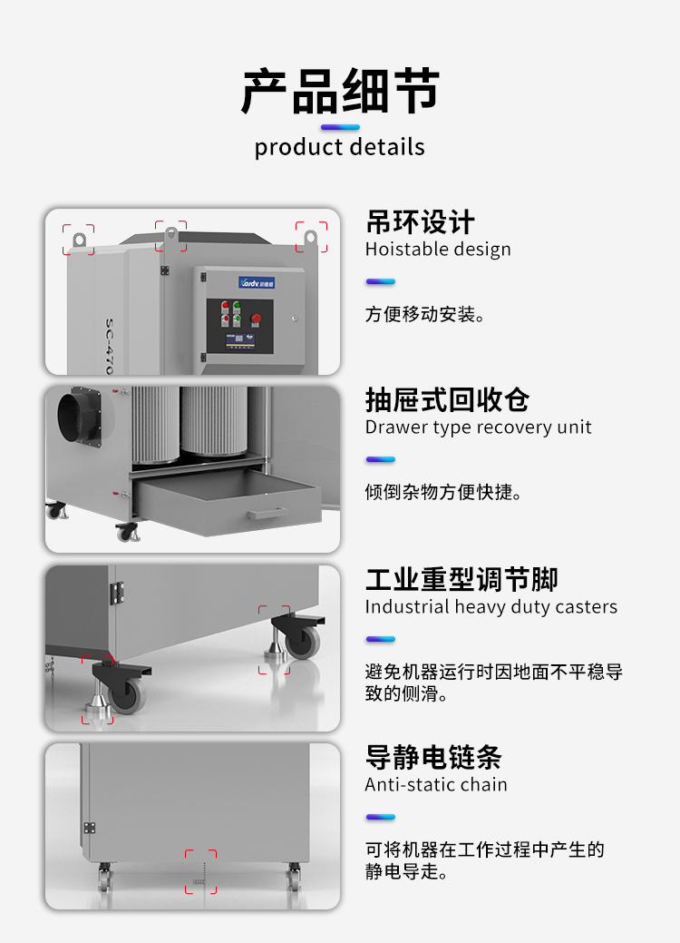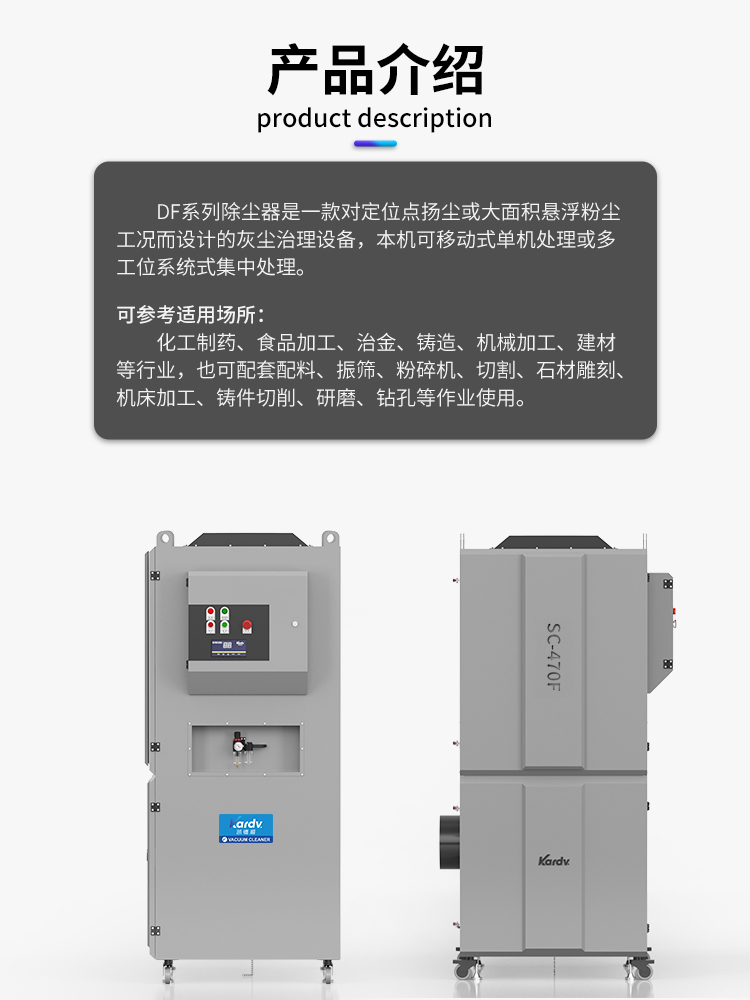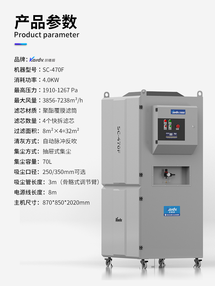 凱德威工業除塵器SC-470,工廠車間用??蓞⒖紝嵱脠鏊夯ぶ扑?,食品加工,冶金、鑄造、機械加工、建材等行業。